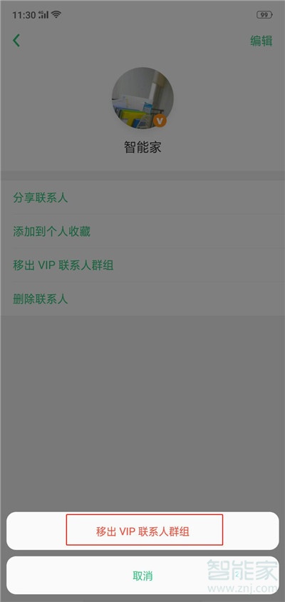 2、选择【移出VIP联系人群组】即可移出。