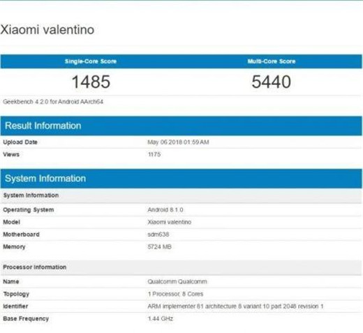 同时根据当时曝光的跑分数据显示,该款新机还预装Android 8.1.0系统和拥有6GB内存,至于多核和单核的分数分别达到了1485和5441,不仅相比骁龙636处理器要出色了许多,而且多核的成绩已经接近了骁龙660处理器的分数,看上去在性能方面还是有着不俗的表现。