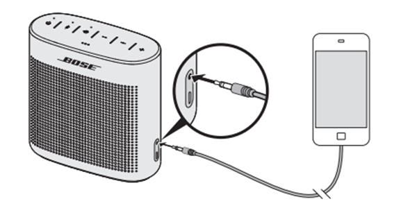 SoundLink Color2蓝牙音响怎么使用3.5mm线缆连接移动设备AUX 连接器可插入 3.5 毫米立体声电缆插头(未提供)。
