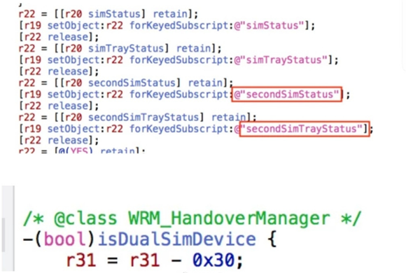 从代码中可以看到“Second SIM Status”的字样,明显就是指向第二个SIM卡槽。过去iPhone全都是单卡设计,因此也不存在什么卡槽选择。新系统加入这一行代码,就可以基本确定下一代iPhone中至少会有一款搭载双卡功能。