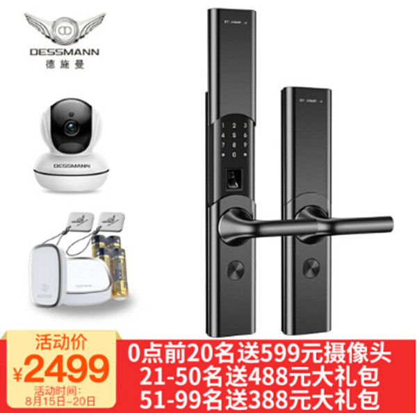 德施曼t86指纹锁现在的售价是️2499元,活动日期8.15-8.20,0点抢购还有诸多好礼相送!