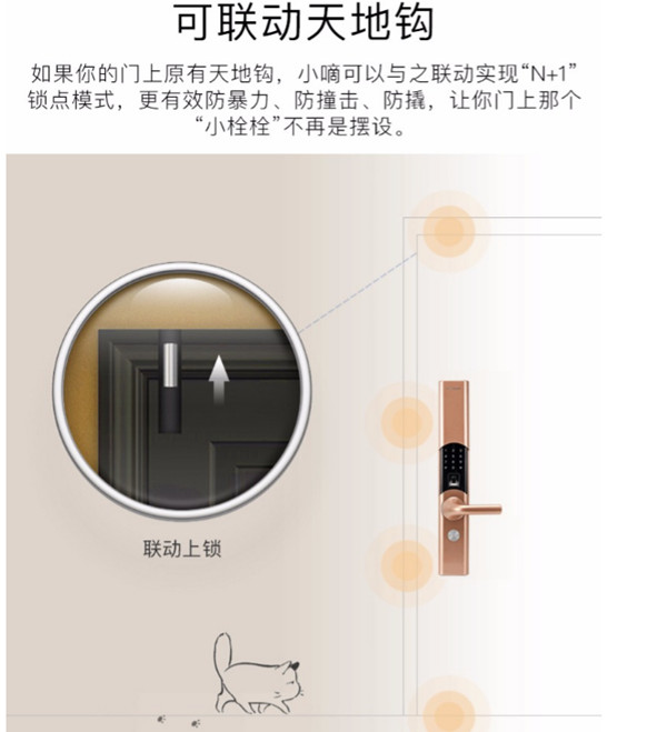 4.德施曼t86指纹锁可以️联动天地钩使用,防暴力开锁指数MAX;