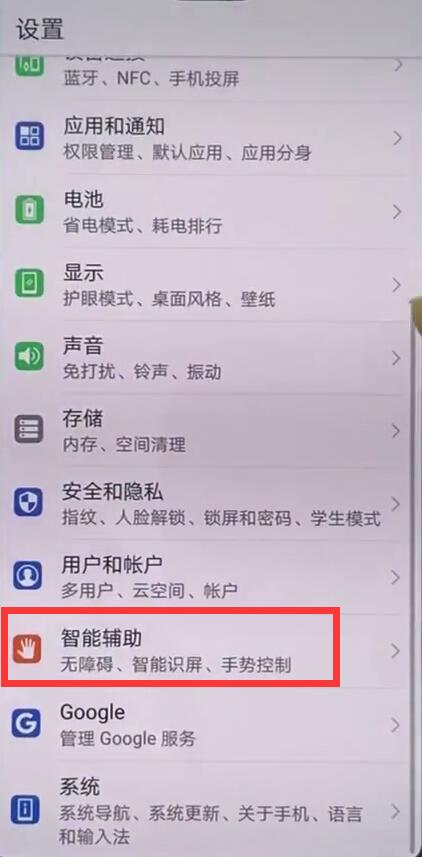2、在设置菜单下找到并点击打开【智能辅助】,