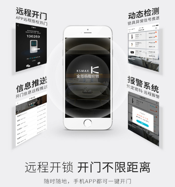 金指码K51指纹锁除了有指纹、APP开锁之外还有卡片开锁、密码开锁、钥匙开锁以及密码和APP组合开锁。