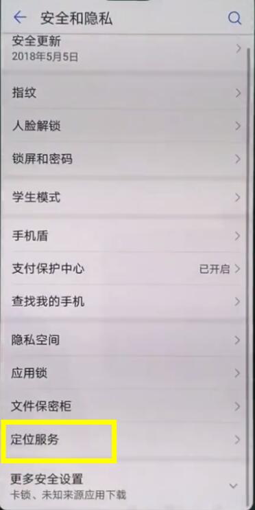 3、点击进入【定位服务】,