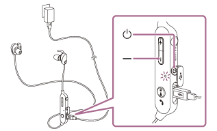 重置耳机如果耳机无法打开,或即使打开也无法操作,则在充电期间按下电源按钮和“-”按钮。耳机将重置,配对信息不会删除。