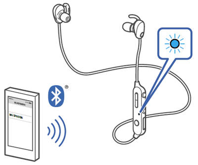 按照屏幕说明完成配对和连接,当耳机与智能手机连接时,蓝色指示灯开始缓慢闪烁,会听见语音指导“蓝牙连接”。