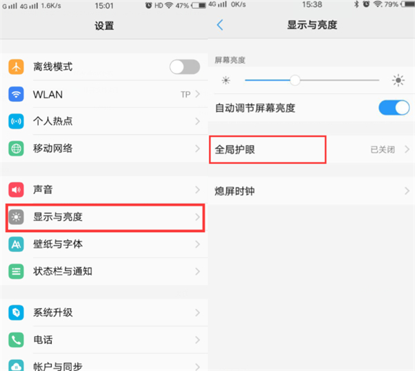 在手机中找到【设置】,进入设置找到【显示与亮度】,进入显示与亮度即可查看到【全局护眼】。