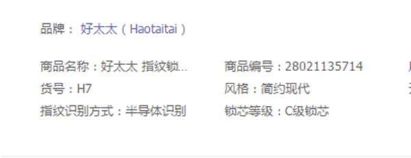我们可以从它的商品介绍中看到,这款H7指纹锁采用的是半导体识别,这样也就说明H7指纹锁识别速度更快,识别更精准,而且能一定程度防止假指纹、指纹套蒙混过关。