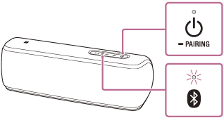 2、按住【电源】按钮/- PAIRING按钮,直至听到语音指导,并且【BLUETOOTH】指示灯开始快速闪烁。