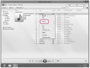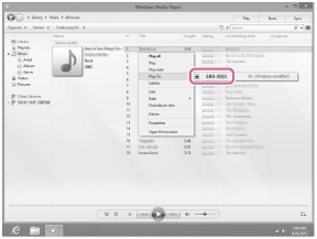 启动Windows Media Player后,可以通过[Play To]功能播放音乐。按照PC画面上的说明操作。