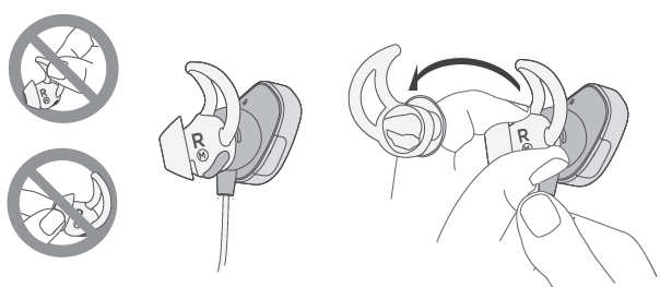 ️小心:为防止断裂,应抓住StayHear+Pulse鲨鱼鳍硅胶耳塞的底部,不要拉耳塞的翼部。