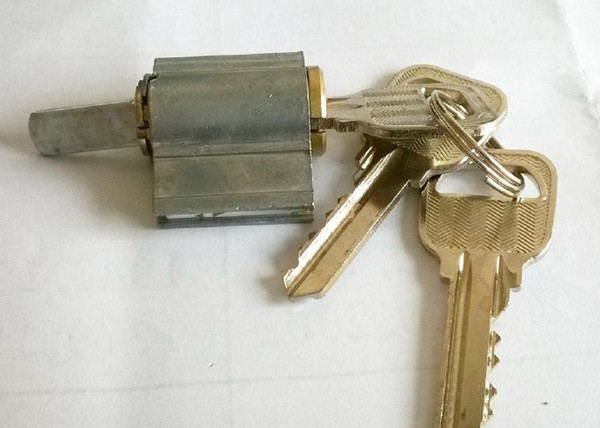 这是锁外部的面板,注意图中️红圈部分的"一"字型铁芯