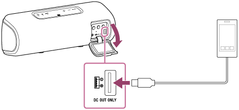 1、使用USB电缆(市售)将智能手机或iPhone等USB设备连接到DC OUT ONLY端口(USB)。