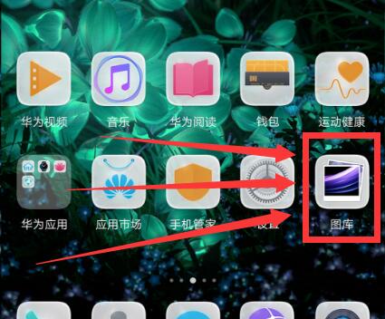 1、心怡的壁纸下载到手机相册里以后,在华为nova3的手机桌面上找到【图库】,点击打开,