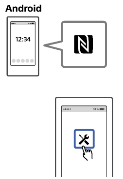 与智能手机的一触连接(NFC)如果智能手机的屏幕锁定,请解除锁定,选择手机设置菜单。