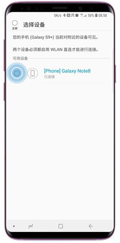 5、选择需要连接的手机设备,比如三星s8手机设备,如图所示。