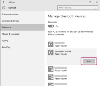 选择[h.ear (MDR-100ABN)],然后单击[Pair]。