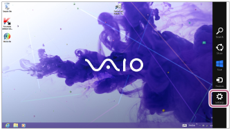 2)、让鼠标与画面的右上方对齐(如果使用触摸面板,请从画面的右边滑动),并从显示的超级按钮中选择[Settings]。