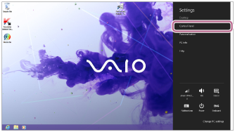 3)、当显示[Settings]超级按钮时,单击[Control Panel]。