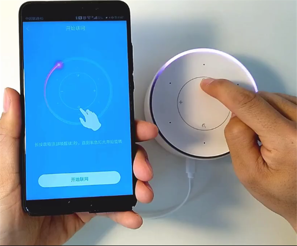 3、长按mini2音箱顶部圆圈标志的唤醒键(大概三秒左右)。