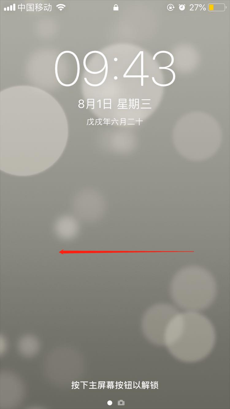 用手指向左滑动屏幕,相机就打开了。