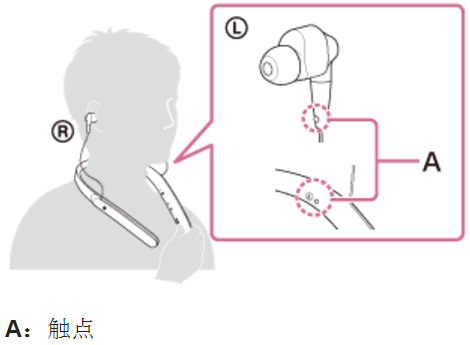 戴上耳机佩戴耳机时使指示在左耳,指示在右耳,耳机的单元有一个触点。