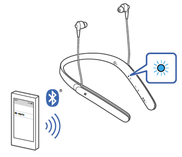 按照屏幕说明完成配对和连接,当耳机与智能手机连接时,蓝色指示灯开始缓慢闪烁,会听见语音指导“蓝牙连接”。