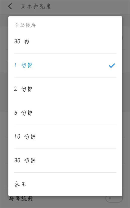这时候会弹出来一个设置休眠时间的窗口,那么可以根据自己的需要延长手机休眠的时间,建议2分钟是最佳锁屏的时间了,可以参考设置。