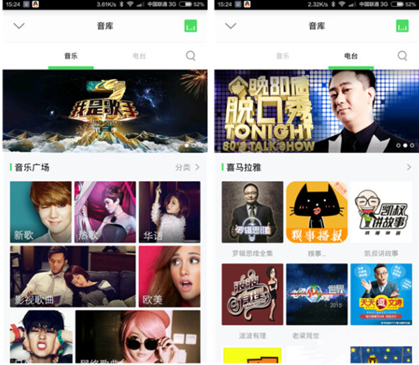 音库里也有很多歌曲,推荐有我是歌手等节目,还有喜马拉雅电台、故事、新闻、笑话、相声、脱口秀等。