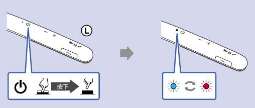 检查电池剩余电量通过按下开机按钮可检查充电电池的电池剩余电量,打开耳机时或在耳机打开状态下按下按钮,指示灯(蓝色)闪烁两次,然后指示灯(红色)闪烁,此时也会听见语音指导读出电池剩余电量。
