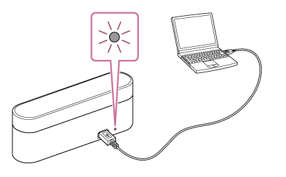 2.对充电盒充电时,耳机和充电盒均会充电。充电期间,耳机和充电盒(背面)上的指示灯均亮为红色。充电完成后,相应指示灯熄灭。