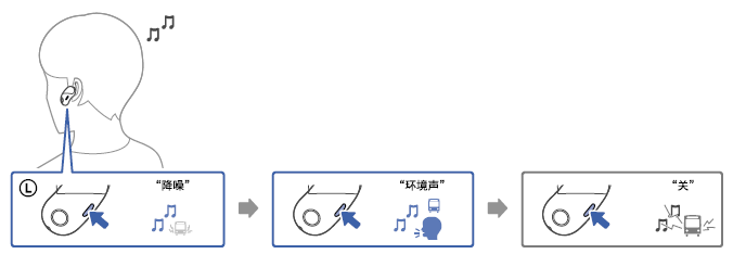 按下左边耳机的功能键可以控制降噪功能,按一次实现一项功能。
