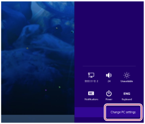 1、将鼠标指针移动到画面的右上(或右下)角以显示超级按钮,然后选择【Settings】。