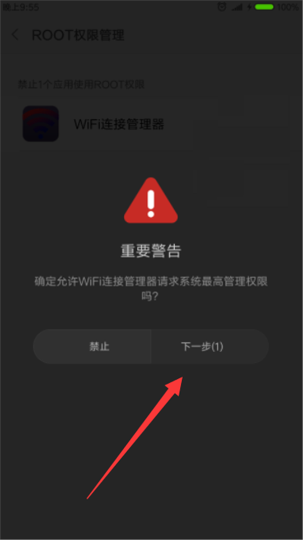 在root开启界面中,根据屏幕提示操作,选择【下一步】即可开通root权限。