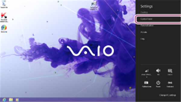 3)、显示【Settings】超级按钮时,单机【Control Panel】。