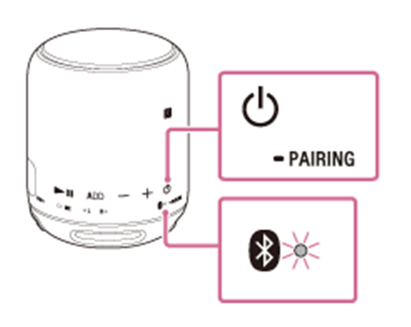3、按住电源-PAIRING按钮,直至听到提示音,并且蓝牙指示灯开始以白色快速闪烁。