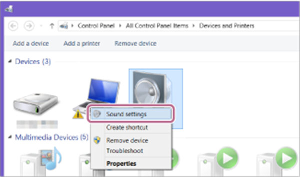 4)、右键单机【Devices】中的【SRS-XB10】,然后从出现的菜单中选择【Sound Settings】。