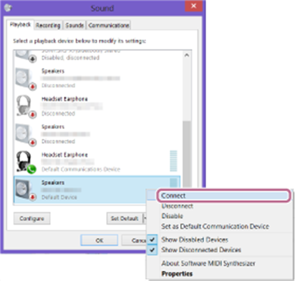6)、右键单击【SRS-XB10Stereo】,然后从出现的菜单中选择【Connect】。