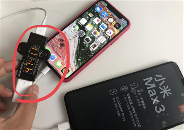 小米Max3将反向充电的电流提升到了最大1.2A,所以说是反向“快”充,我试了下给一个电量还剩20%的iPhone X充电,最大电流能到1.1A,考虑搭配测量表转接损耗,1.2A这个标称数据还是靠谱的。