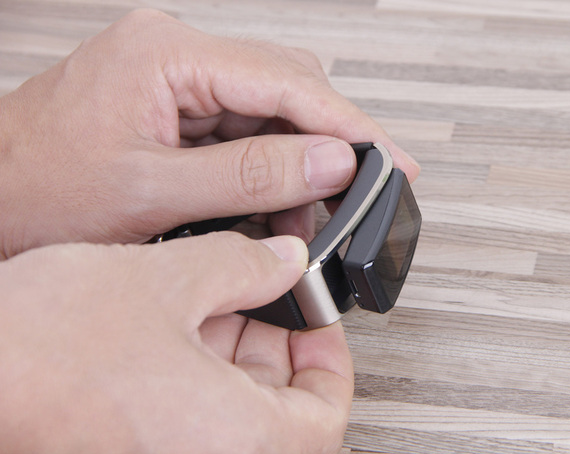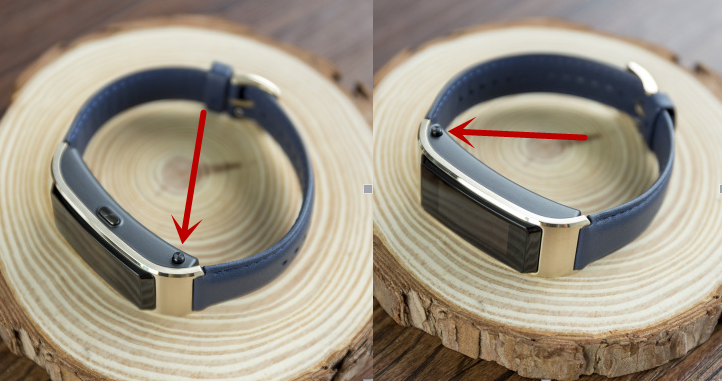 拆卸耳机首先可以看到手环设备部分靠近表带位置两次都有一个突起的按钮。