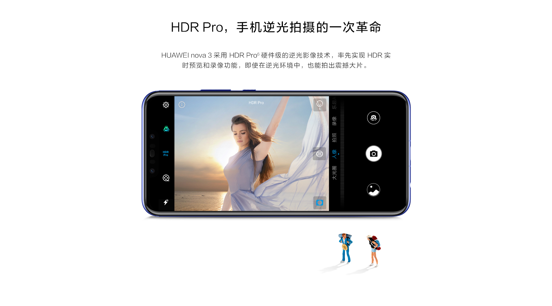 不仅如此华为nova3主摄像头1600万(彩色)像素+2400万(黑白)像素,F/1.8光圈,支持自动对焦(深度对焦/相位对焦/反差对焦),副摄像头采用2400万(彩色)像素+200万(彩色)像素,F/2.0光圈,支持固定焦距,又一拍照神器腾空出世。