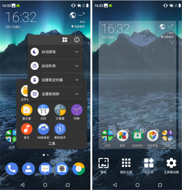应用快速启动,用户只需长按桌面上的的APP图标,如果APP支持的话,就会显示出该APP的重点功能快速启动。自适应图标则是长按桌面空白处,会出现“主屏幕设置”,点击会出现“更改图标形状”选项。