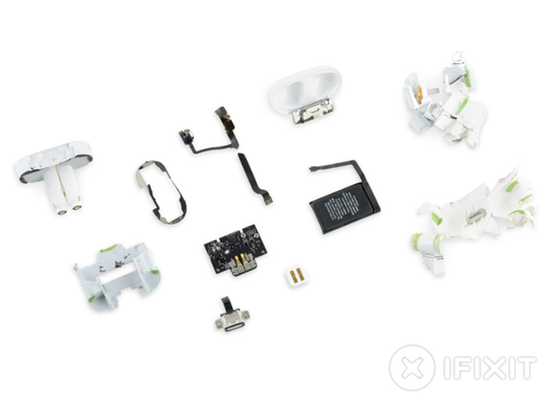 IFIXIT是美国著名的拆解网站,以拆解时尚IT产品和提供苹果维修手册而闻名。他们给出AirPods的可修复得分为:0分(10分为最容易修复),理由是不破坏外壳根本不可能拆出零部件, 耳机和充电盒的外部都只使用粘合剂进行连接固定(使开启变得困难)。