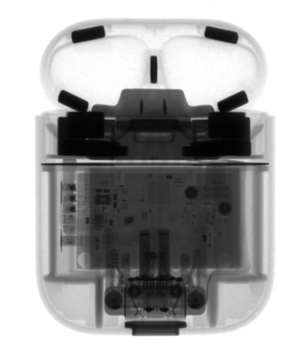 然后通过X光看看耳机内部有多少东西,从图片上可以看得出来,耳机内部塞着满满的电子元件。