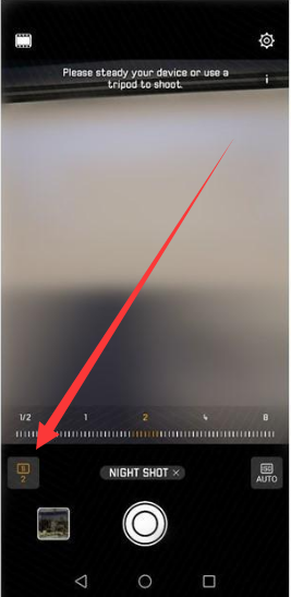 3、进入夜景模式后,我们可以点击左侧的图标,调节曝光时间,数值越小,曝光时间越短,如下图: