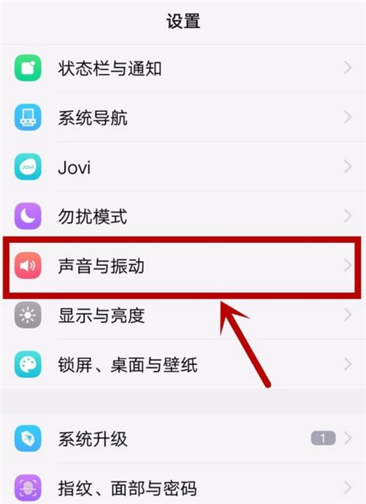 进入设置之后,在里面点击【声音和振动】选项,进入此界面,如图所示。