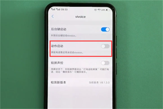 进入手机【设置】--找到【vivoice】中将【动作启动】开关打开,拿起手机靠近耳朵即可启动语音助手。