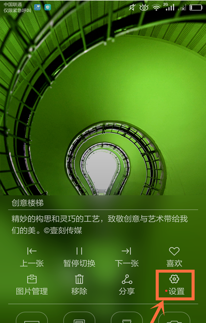 1、我们在手机锁屏界面从屏幕底部向上滑动,打开杂志界面,点击【设置】,