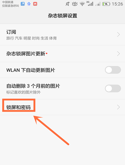 2、找到并点击【锁屏和密码】,在打开的页面中,选择【杂志锁屏】,点击关闭【WLAN下自动更新图片】即可关闭杂志锁屏自动更新。